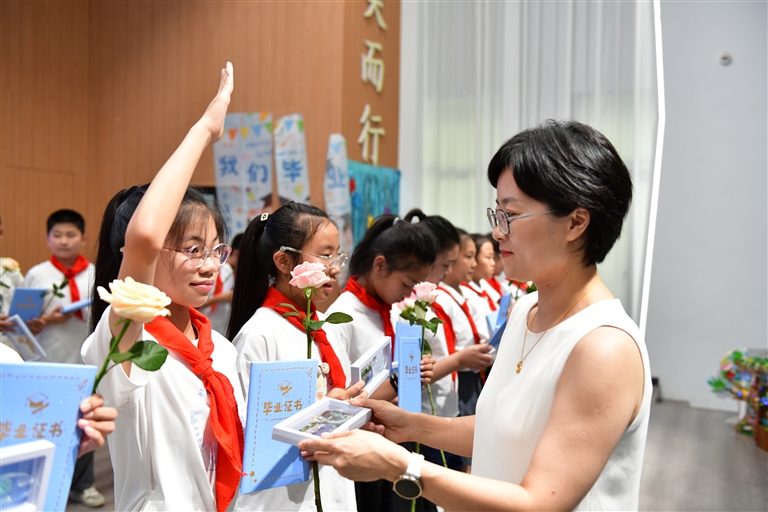 这些看似普通的礼物,承载着老师们六年来精心记录的“成长档案”,每一件都无比珍贵。“这是我们为孩子们准备的人生锦囊,也是给毕业班上的最后一课。毕业不是告别,而是开启新的探险。愿孩子们带着母校的祝福、老师的叮咛、同学的友谊,保持善良,坚持努力,勇敢追梦!”诸丹英老师如是说。