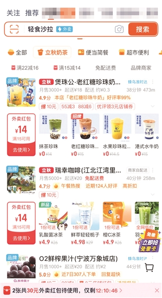 今年7月以来,外卖平台密集的补贴策略催生了“抢不完的红包”。特别是立秋当天,“秋天的第一杯奶茶”,成了茶饮界的“双十一”。当天,萧山大大小小的茶饮店订单暴增,店员们忙到飞起,许多市民中午点单,晚上才能喝到奶茶。