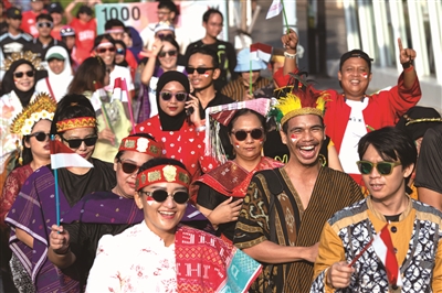 8月17日是印尼独立80周年纪念日。二战期间,当时作为荷兰殖民地的印尼被日军占领。1945年日本投降之后,印尼领导人苏加诺和穆罕默德·哈达于当年8月17日宣布印度尼西亚独立。图为8月17日在印度尼西亚雅加达街头拍摄的着传统服饰的庆祝人群。