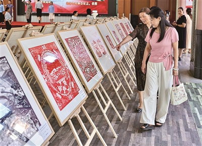 8月14日,“两山”理念剪纸艺术展巡展在衙前镇杨汛村文化礼堂开展,今年是“绿水青山就是金山银山”理念提出20周年,此次艺术展也是为“两山”理念的模范践行和积极传播贡献文化艺术的力量。现场吸引了众多衙前镇剪纸爱好者到场参观。