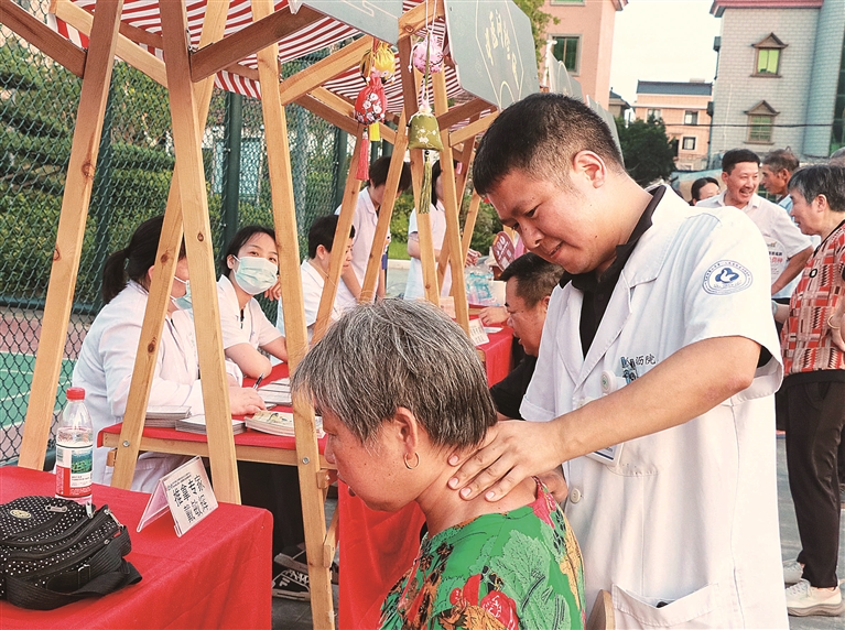 近日,南阳街道举办“龙虎精气神 夜市探岐黄”中医养生健康夜市,为居民带来家门口的中医服务。