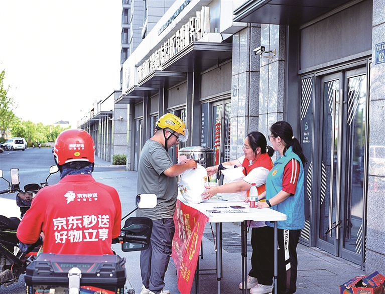 近日,党湾镇总工会、卫东桥社区在工会爱心驿站联合开展“夏日送清凉,关爱暖人心”主题活动,为外卖员、快递员等户外劳动者送上冰镇绿豆汤和夏令慰问品。