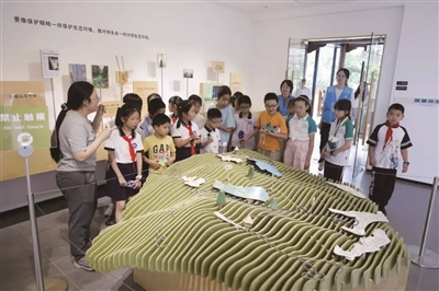 “山坡上的小草如何‘锁住’泥土?”“鸟儿为什么喜欢在这片树林安家?”疑问声此起彼伏,知识的种子在这一间间展厅里悄然扎根。