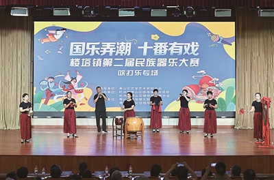 近日,楼塔镇举办第二届民族器乐大赛,让古老的十番音乐焕发青春光彩,助推楼塔文旅精彩出圈。来自全镇范围的9支队伍近百名选手参加,其中有七八十岁的老人,也有十多岁的孩童,演出节目包括唢呐演奏、锣鼓表演等,通过表演展现出民族器乐的无穷魅力。