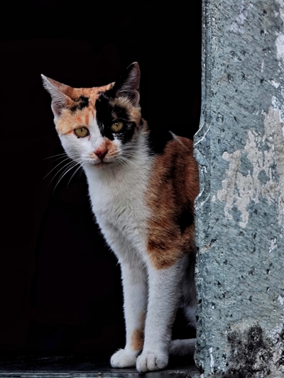 @一叶舟(周祖友) 凝望 三色灵猫探个脑袋,用警惕又好奇的神态对视着我。 |