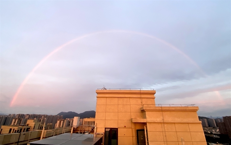 @蜗牛飞 早起看朝霞,被彩虹截胡 披着霞光的彩虹。 |