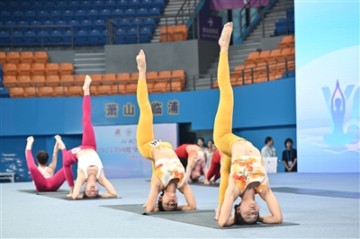 单人赛中,选手们以精准的体式与稳定的核心,展现出对健身瑜伽的极致掌控;双人赛上,搭档之间默契配合、呼吸同步,诠释了健身瑜伽“联结”的深层内涵;集体项目中,队员们动作整齐划一、精神昂扬向上,将健身瑜伽的团队魅力展现得淋漓尽致。