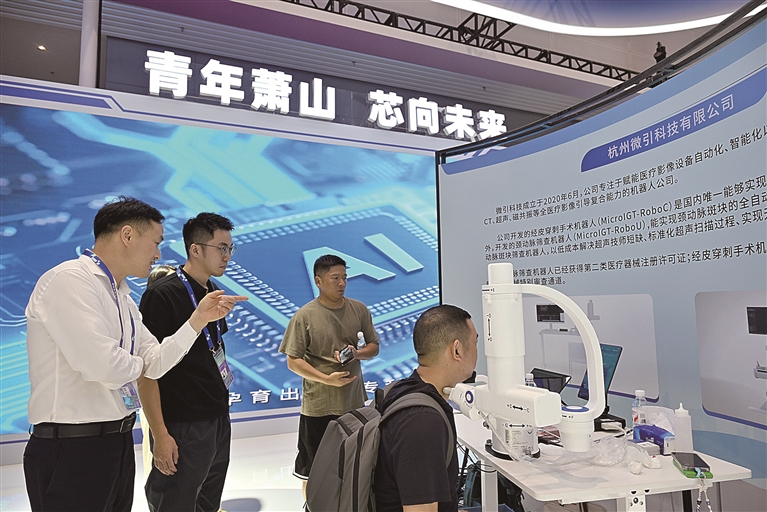 微医参展人员表示,依托萧山产业生态优势和优越的政策环境,计划10月迎客的微医AI国际健康中心将在大数据应用、上下游资源链接、场景应用等方面展开深度探索,在萧山形成从基础研究、技术开发到场景应用的完整产业链。