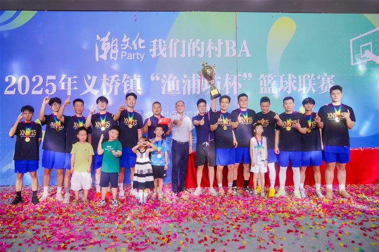 七八月间的义桥,篮球热潮席卷全镇。为期24天的“潮文化party·我们的村BA”2025年义桥镇“渔浦坊杯”篮球联赛在欢呼声中圆满落幕。本届赛事吸引了来自义桥镇各村社、企事业单位的28支篮球队,270余名健儿在球场上挥洒汗水、奋力拼搏,万余名观众在场下喝彩,篮球成为这个夏日义桥镇最靓丽的风景。
