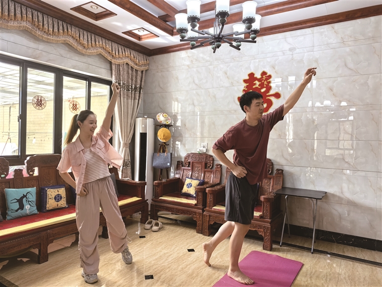 在运动方面,两人根据兴趣差异制定“互补计划”,朱庆楠陪着沈恬跳操,沈恬则陪着朱庆楠骑车、打篮球,把运动融入生活。