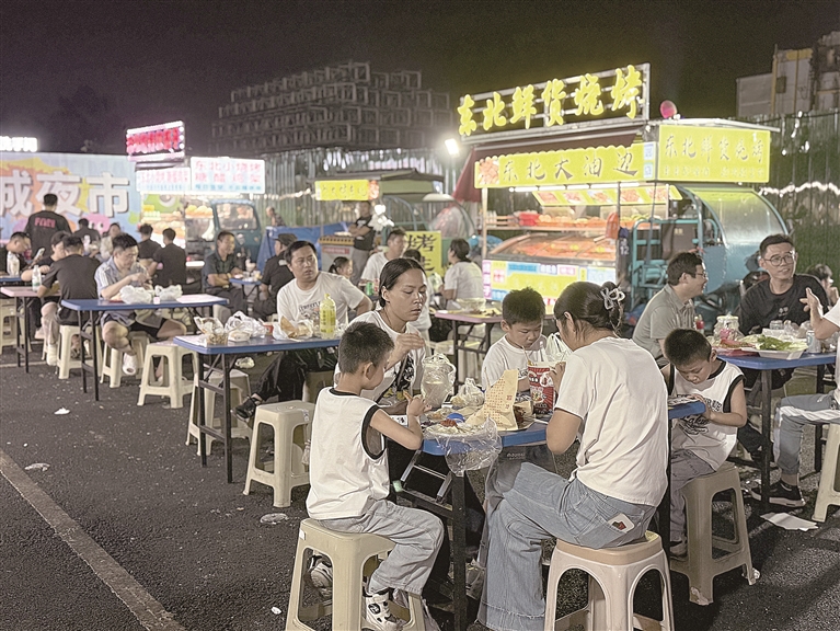 正在和同事聚餐的市民曹先生深有感触。“以前开车经过路边夜宵摊,觉得很热闹,但总感觉乱。现在夜市集中经营,管理有序多了,还有公共区域可以坐着吃,种类也很丰富。特别是我们同事从老家过来,他说这里的羊头特别好吃。”