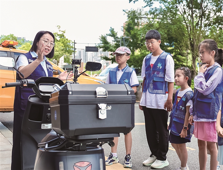 近日,区综合行政执法局组织了一场“城市小管家”体验活动,让孩子们穿上定制马甲,识别窨井盖破损问题,同时感受无人机、智能采集车等科技设备守护城市的魅力。 记者 郭立宏 通讯员 朱栋