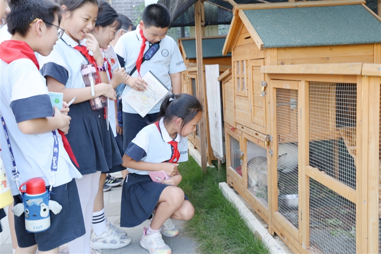 活动首站设在靖江一小的“文耕园”。同学们一踏入园中,仿佛打开了一本立体的生命教科书。“这是什么蔬菜?”“不同品种的小动物是如何友好相处的?”一个个充满童真的问题在观察与交流中被不断提出。他们在亲近自然的过程中学会了观察、懂得了尊重,心中悄然播下了热爱生命的种子。随后,同学们漫步于清水广场,走进校史馆,在宁静与厚重中感受校园文化的浸润,触摸学校发展的脉络。