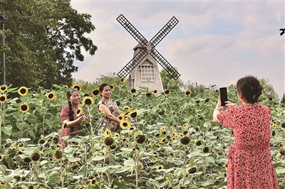 近日,南江公园的向日葵迎来盛开期,金黄色的花瓣肆意舒展,吸引市民前去打卡,定格这份热烈与美好。