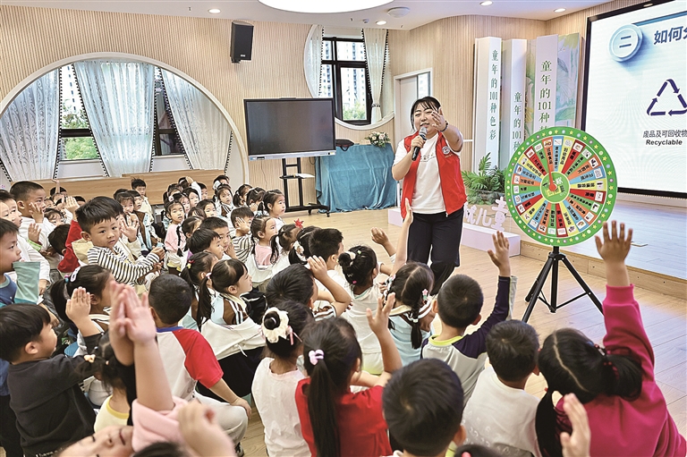 近日,市城市管理指挥保障中心联合区综合行政执法局走进香悦幼儿园,为孩子们带来了一场环保宣教活动。活动中,工作人员通过互动游戏,让孩子们轻松掌握垃圾分类知识。