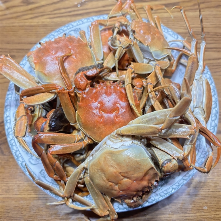 | @蝴蝶飞 老两口的晚餐 暮色漫进窗时,桌上已摆了四样菜。青菜脆绿油亮;胡萝卜片炒得软绵,嚼着带甜;芋艿片冒热气,粉糯滑溜。最金贵的是钱塘江蟹,红透的壳里藏着肥膏。 挑一只即将脱壳的递给老伴,回敬一只刚脱壳的软壳蟹,碰一下酒杯:“干”。 |