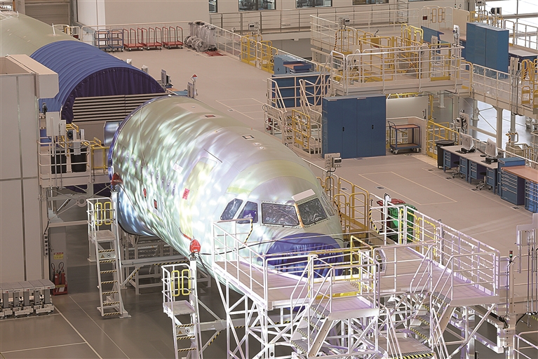 图为10月22日在空客二线项目总装厂房拍摄的一架待总装飞机。新华社记者 孙凡越 摄