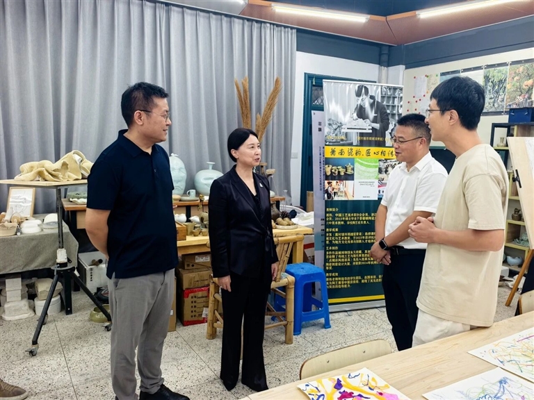 在萧山六中党委书记莫利崧、副校长倪杨波等人的陪同下,来宾们深入走访校园,参观萧山六中画室、陶艺教室、音乐教室、影视特长班专业教室等特色场地,细致品鉴学生作品,感受艺术育人氛围,对学生们的优秀创作和表演,对学校将艺术教育融入校园的实践,给予了高度评价。