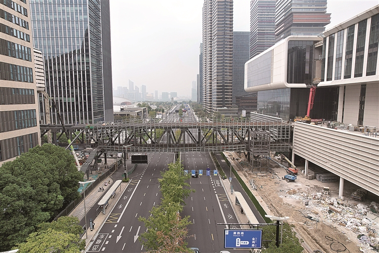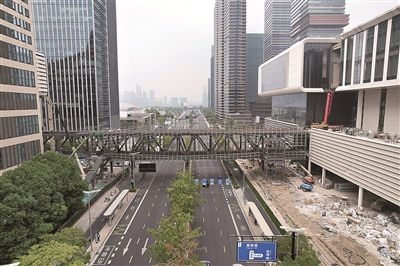 杭州国际博览中心二期项目目前全面进入竣工收尾阶段,完工后一期、二期项目将实现“珠联璧合”。图为连接一期、二期的双层空中连廊。