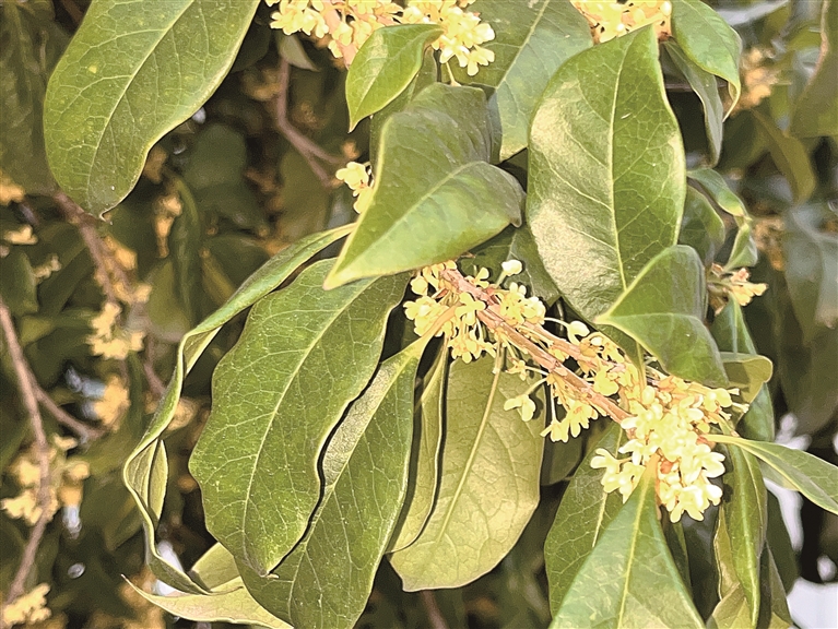 眼看这秋天一天天凉下去,别的花都谢了一轮,今岁的桂子还在枝头攒着黄米小粒,赏桂的人等啊等,从秋分等到霜降,才嗅到丝丝缕缕的甜香,不禁感慨:“终于香了,又要闹猛起来了。”虽说香气已经从花苞透出来了,但目前萧山的桂花还未进入盛放期,想要体验“香满空山、金粟世界”的盛景,估计还要耐心等上几天。