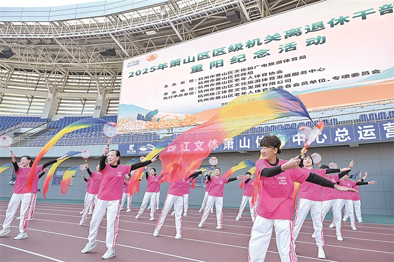 昨日,2025年萧山区区级机关离退休干部职工重阳纪念活动在区体育中心举行。众多离退休干部职工欢聚一堂,以文体展演、趣味互动及自由健走等形式共庆佳节。