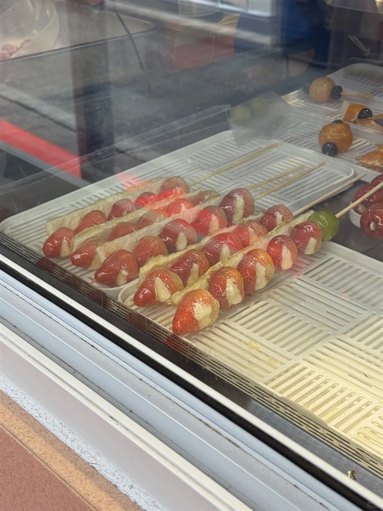 | @可可卡路里 奶皮子糖葫芦 奶皮子糖葫芦可是最近社交平台的顶流啊,刷了两天,实在馋得不行,奶皮子加上冷萃酸奶实属人间美味。买的时候还发现了无花果和草莓口味的, 也要来一串!当然千人千味,并不适合每一个人。 |