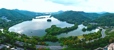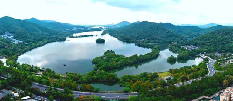 | @黄瑞明 湘湖好似宝葫芦 湘湖形似宝葫芦。青山环湖立,碧水映蓝天。生态湘湖,美如诗画! |