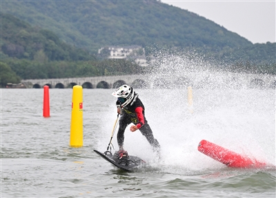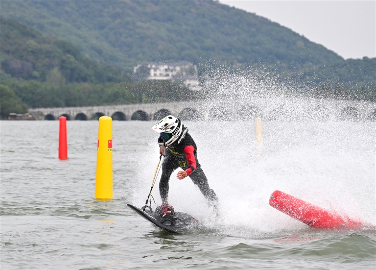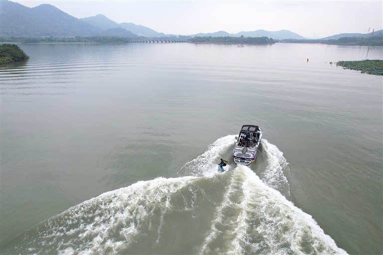 10月24日至29日,2025年全国滑水锦标赛和2025年全国动力冲浪板青年锦标赛在湘湖定山广场水域举行。来自北京、四川等全国各地的110余名选手齐聚于此,共赴这场水上竞技的狂欢。