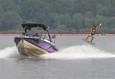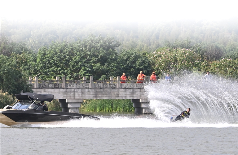 此次比赛设滑水与动力冲浪板两大竞赛类别。滑水项目精彩绝伦,选手们借助船尾激起的浪花,于波峰浪谷间灵活穿梭,尽显高超平衡技巧。尾波滑水之际,他们脚踏滑水板,随船破浪前行,姿态轻盈且充满力量;回旋项目中,选手精准操控,在水面划出优美弧线;花样滑水更是惊艳四座,各种高难度动作令人目不暇接。动力冲浪板青年锦标赛聚焦青少年的成长,障碍回旋赛里,选手巧妙绕过一个个障碍;环圈竞速赛中,他们如离弦之箭,在水面飞驰,充分彰显青春活力与竞技风采。