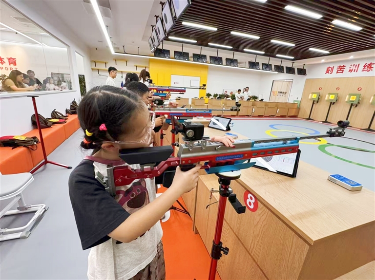 10月3日,小记者们怀着对射击运动的好奇,走进锐意体育,开启了一场别开生面的“神枪手”探秘之旅。在最令人期待的实战环节中,大家端起沉甸甸的训练枪,努力做好每一个动作:站稳、举枪、瞄准、屏息、预压扳机……现场“砰砰”声与电子靶报分的滴滴声此起彼伏,成功的喜悦与偶尔脱靶的惋惜交织,气氛热烈。此次锐意体育之行,不仅让大家亲身体验了射击的乐趣,更深刻领悟了纪律、专注与坚持的体育精神。(文/摄 赵雯洁)