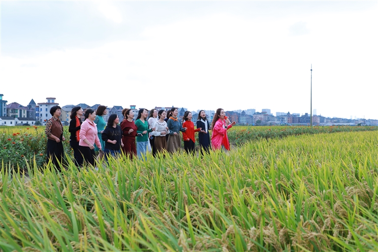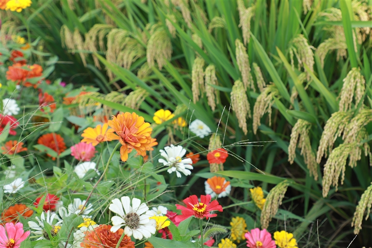 繁花与稻穗,共绘田园景