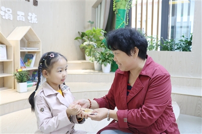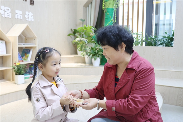 “爷爷,快尝尝我炒的青菜!”“奶奶,这碗南瓜粥是我煮的!”当萌娃们捧上亲手制作的菜肴,爷爷奶奶的眼眶湿润了。细细品尝后,他们连声夸赞:“好吃!宝贝真的长大了。”这一刻,菜肴的滋味早已超越食物本身,成为连接祖孙情感的温暖纽带。第二天,孩子们还将自制的糖藕、桂花小丸子送给保安叔叔和食堂阿姨,让这份甜蜜在校园里持续传递。