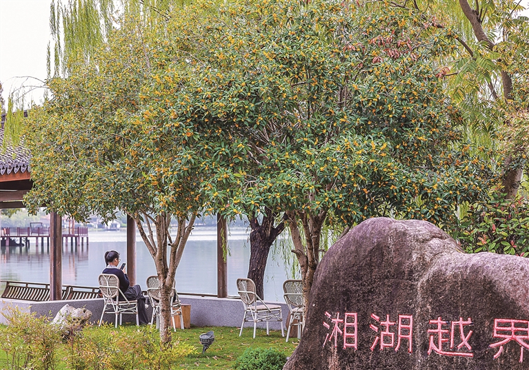 近日,湘湖越界桂花树进入盛花期,金黄的花瓣随风飘落,空气里满是清甜的香气,吸引了不少游客驻足拍照,沉浸式感受秋日限定美景。