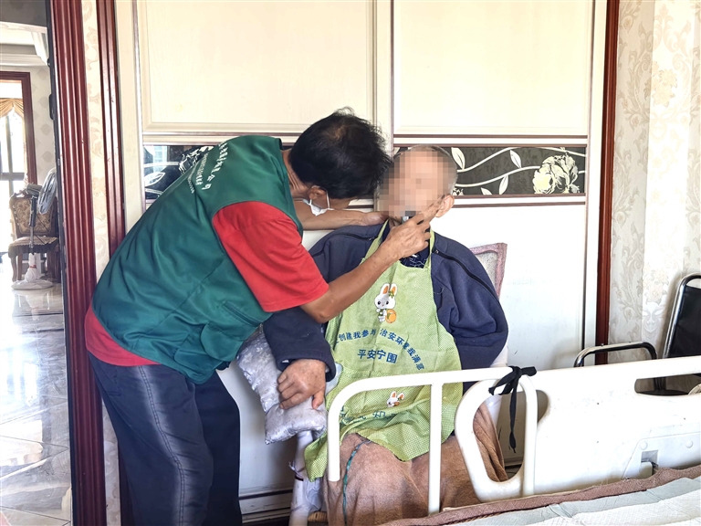 刚开始上门时,张师傅能明显感觉到家属的顾虑,毕竟“男护理员”“外地师傅”,他们难免不放心。但张师傅没多想,只想着用行动打消顾虑:测血压、量体温会反复核对确保精准,剪指甲轻手轻脚怕碰疼,清洁口腔先试水温,就连剃须,都会把剃须刀在温水里浸一浸,避免凉意刺激老人。这些小事,慢慢打消了家属最初的顾虑,也让陆大伯家重新有了欢声笑语。“我能安心把这些细节做好,多亏了长护险给的底气。不仅有专业培训教我怎么科学照护,更让我有机会把这份细心变成职业,既帮陆大伯家解了困,也让自己的工作有了实实在在的温度。”张师傅说。