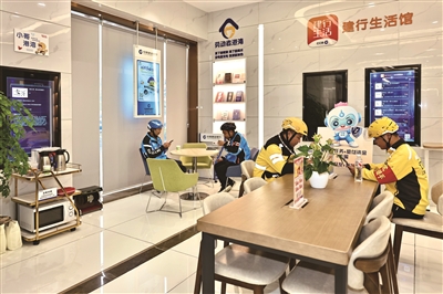 近日,盈丰街道联合中国建设银行杭州萧山支行,为快递小哥、外卖骑手等户外劳动者量身打造的温馨驿站“小哥港湾”正式启用。不仅帮助小哥们解决奔波途中“喝水难、休息难、充电难”等问题,还提供热饭、手机充电、急救箱保障等数十项免费基础服务。