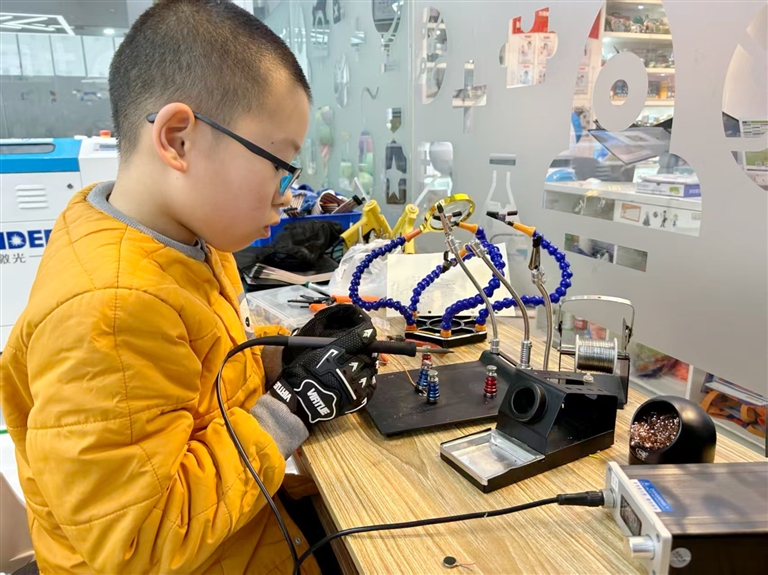 特别是在接触编程后,鲍余余更是发现了科技的魅力所在。原本枯燥的代码字符,经过他的调试,竟能变成生动的图像和有趣的小游戏。那时,他也渐渐明白,科技不再是冰冷的零件组合,而是实现奇思妙想的魔法棒。