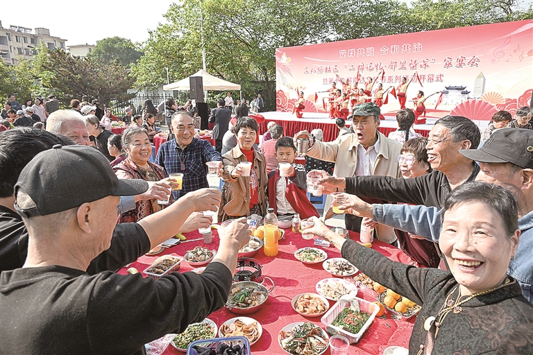日前,北干街道工人路社区举办“二棉记忆·邻里情深”家宴会暨第十九届百姓文化节系列活动开幕式。一道道居民亲手烹制的家常菜,一个个居民自编、自演的节目,这场以“宴”为媒、以“文”化人的社区盛会,共同谱写了社区幸福家园的新篇章。