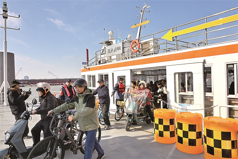 钱江三桥将于11月22日零时起正式封闭施工,计划2027年12月底建成通车。昨日,钱塘江过江轮渡开通,为非机动车出行的市民提供免费服务,北岸乘船点设在城市阳台渡埠,南岸设在奥体中心渡埠。