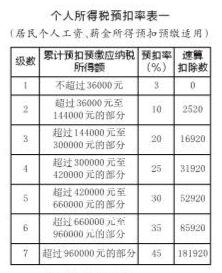 上述公式中的预扣率、速算扣除数,按照2018年第61号公告所附的《个人所得税预扣率表一》执行。