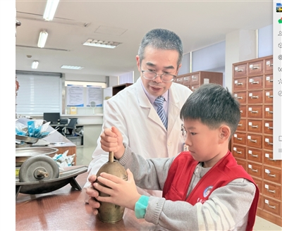 活动伊始,郭冬珂医师为大家带来一堂实用的急救知识课。他聚焦青少年户外可能遇到的蛇虫咬伤等风险,给出了直接有效的应急处理指导,让小记者们意识到:医学不仅是高深学问,更是人人可学的“生存技能”。随后,小记者们跟随缪才刚主管中药师来到了充满草木清香的中医药馆与百草园。百草园里,小记者们亲眼辨认了书本上的草药;中药馆内,一个个标注药名的小抽屉宛如自然精华的宝库。最让人兴奋的是亲手体验捣药、称药,在一捣一称间感受古人智慧与自然馈赠。这次医院之行是一次深刻的医学启蒙。现代急救与古老中医在此交汇,它们用不同语言,共同诠释着对生命的尊重与守护。(文/摄 雷小燕)