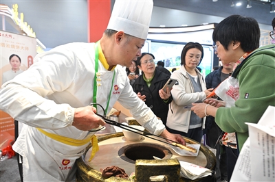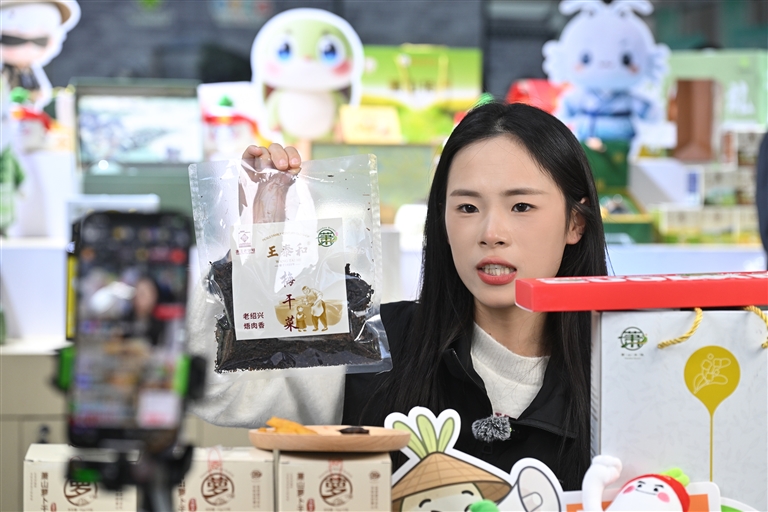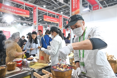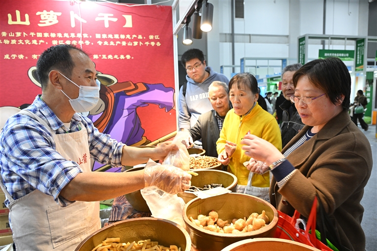展会现场,人头攒动,气氛热烈。直播的吆喝声、讨价还价的交谈声交织在一起,洋溢着浓厚的市集氛围。3500多家企业齐聚一堂,带来40000多种土特产品,涵盖高山好物、深海鲜货、非遗手作、电商爆款等众多品类。浙江农业博览会已成为广大市民年终餐桌上一道不可或缺的“盼头”。 记者 范方斌 摄