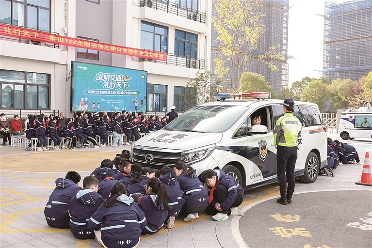 昨日,区公安分局交警大队联合区教育局,在城东小学开展以“文明交通 礼行天下”为主题的“122全国交通安全日”活动,通过无人巡逻车宣讲、路口及车辆盲区体验、“开门杀”防范与安全头盔佩戴实操等互动形式,强化交通参与者安全意识,筑牢文明交通防线。