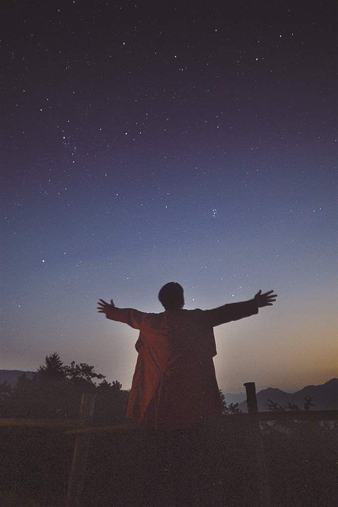 我一动不动地躺着,脑海是放空的,思绪是万千的。曾经的烦恼、困惑、不悦、沮丧……随风而散,唯有眼底星空,才是真实的。我睡不着,舍不得闭上眼睛,生怕错过今夜的繁星,错过流星划破天际的转瞬即逝。