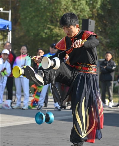 此次赛事不仅为空竹爱好者搭建了交流互动的平台,更通过高难度动作的展示与团队配合的精彩演出,生动诠释了空竹“刚柔并济、人竹合一”的独特魅力,进一步推动了传统体育项目的传承与创新,让这项古老技艺在新时代焕发出勃勃生机。