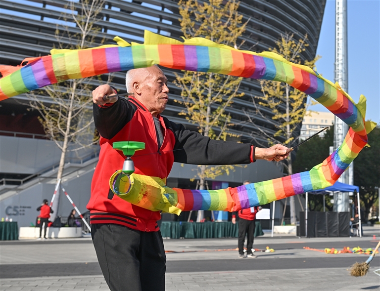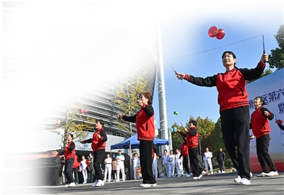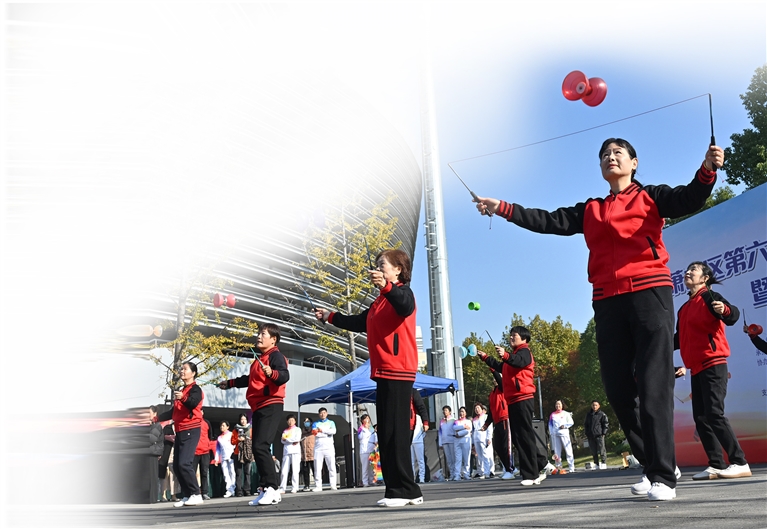 萧山区第六届“萧然杯”空竹运动会暨空竹精英邀请赛近日在区体育中心成功举办,共吸引了15支队伍、238名选手同场竞技。赛事内容丰富多彩,设置了精英展示赛、团体展演赛和规定动作招式竞赛三大类别、12个竞赛项目,涵盖了双轮空竹技艺、单轮空竹平盘丝、多呼啦圈花样、三步舞、舞龙、特技表演以及规定动作和亲子体验等多个类别,全面展现了空竹技艺的精湛与多元。