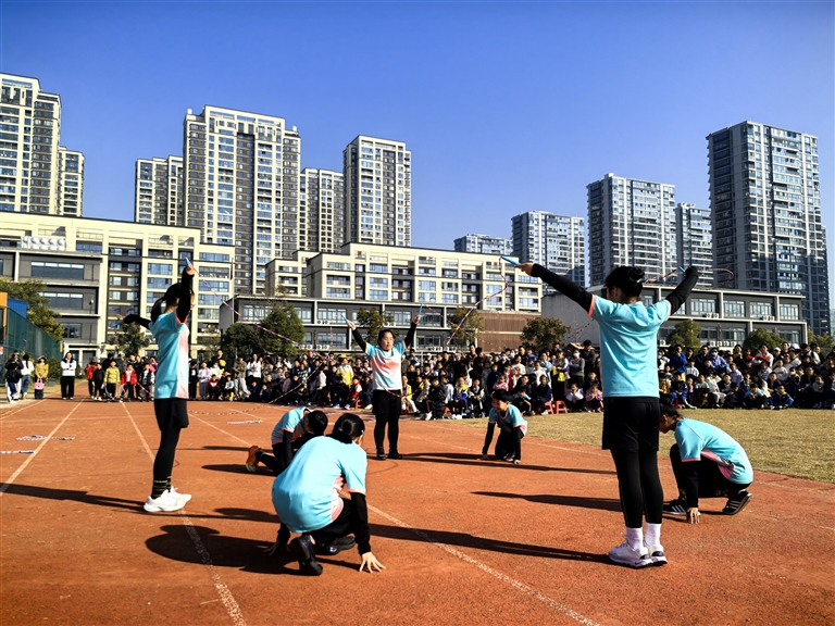 绳操是南城小学的特色体育项目,学校自2021年起,将绳操纳入校本课程,通过“课程普及+社团培优+赛事驱动”的三维模式,使之成为学生体质提升与综合素养培育的重要载体。