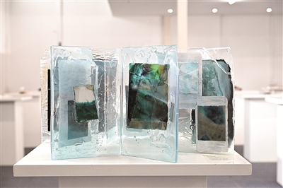 “一进门就挺震撼的,每个小小的展台上都陈列着一本厚重的手工书。主办方还给我们分发棉手套,避免给这些书籍留下污渍。”大四摄影系学生丁丁说,她对季欣愿的《blue》、雷晓磊的《我与我》和朱穗的《装饰画展厅》三本手工书印象深刻,“像季欣愿的《blue》,整本书都是淡蓝色,外皮是PVC材质,里面是蓝色液体,触感很舒服,里面还有一艘随波起伏的小船,形式很新颖。”