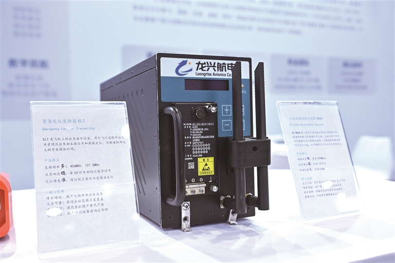 航空产业(低空经济)馆是本届展会规模最大、展品最多的馆区。89家协同参展的企业中,龙兴(杭州)航空电子有限公司的展位前格外热闹,周边航空领域的企业负责人纷纷驻足咨询、交换名片。作为浙江省唯一一家民营航电企业,龙兴航电此次带来了打破国外技术垄断的“硬核产品”——5G WQAR(无线快速存取记录器)、ELT(紧急定位发射器)等系列国产航电设备。