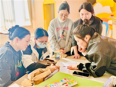 最精彩的环节当属“共创游学愿景图”活动。家委与老师们分为四组,用树枝、落叶、松果等自然材料,亲手设计心中的理想游学路线。围绕目的地选择、安全保障、活动延伸等议题,各组展开了热烈而富有建设性的讨论。有的小组以“平衡”为核心,在足球场规划了二手集市与游戏空间;有的聚焦“感知”,沿运河设计出四季感知路线,融入非遗体验;有的注重“融合”,将运动探索、文化传承与红色教育自然结合;还有的小组崇尚“探索”,在天空公园布置植物迷宫等趣味场景。四幅创意满满的愿景图,生动体现了家长对幼儿教育的思考与期待。
