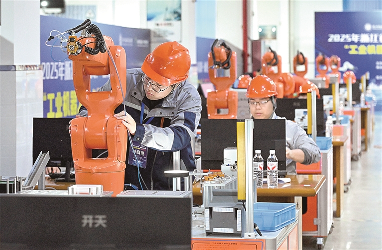 日前,2025年浙江省中高职一体化试点赛“工业机器人技术”项目大赛在萧山一职举行,来自全省中职、高职学校的32支队伍共64名选手,展开了一场技术技能与职业素养的精彩角逐。
